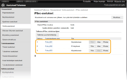 Käyttöpaneelin käyttäminenVoit ottaa IPSec-tiedonsiirron käyttöön tai poistaa sen käytöstä myös Koti-näytön kohdassa <Valikko>. <Käytä IPSec-muotoa>