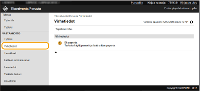 Kun tapahtuu virhe, tämä sivu näytetään, kun napsautat portaalisivulla (pääsivulla) kohdan [Virhetiedot] alla näkyvää viestiä.