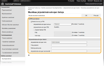 Eräitä asetuksia voidaan muuttaa vain, kun olet kirjautunut järjestelmänvalvojatilassa.