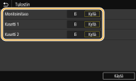 <Kasetti 2> näytetään vain, kun cassette feeding module (valinnainen) on asennettu laitteeseen.
