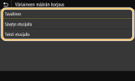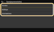 Kun asetukseksi <Väriaineen säästö> on valittu <Kyllä>, tätä kohdetta ei voi asettaa.