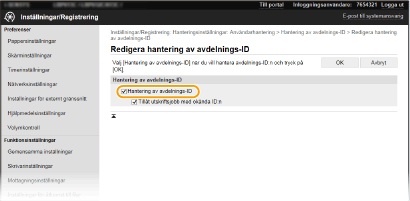 Markera kryssrutan [Hantering av avdelnings-ID].
