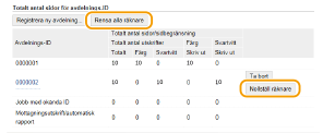 Om du vill nollställa antalet klickar du på länken under [Avdelnings-ID] och sedan klickar du på [Nollställ räknare] /b_key_arrow_right.gif) [OK]. Om du vill nollställa för alla avdelnings-ID klickar du på [Rensa alla räknare] /b_key_arrow_right.gif) [OK].