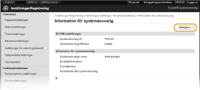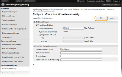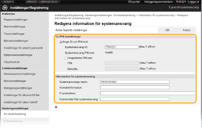 Vissa inställningar kan endast ändras när du är inloggad i systemhanteringsläge.