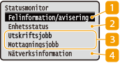 Skärmen <Statusmonitor> på Svartvit LCD-modell