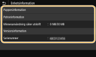 Visar enhetens status, såsom mängden papper eller återstående mängd toner i tonerpatronerna.