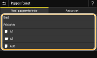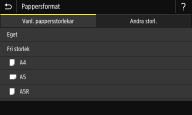 ![]() ![]() Om du registrerar ett pappersformat som du ofta använder på knapparna <S1> till <S3> kan du välja dessa med en enkel knapptryckning. Registrera ett eget pappersformat