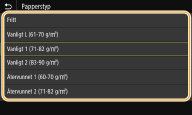 Om ovanstående skärm inte visas när papper fylls påOm du alltid fyller på samma papper i multiutmatningsfacket kan du hoppa över pappersinställningarna genom att registrera pappersformatet och -typen som standardinställningar. När standardinställningarna har registrerats visas emellertid inte ovanstående skärm. Om du vill visa skärmen väljer du <Ange när du matar in papper> (Registrera standardpappersinställningar för multiutmatningsfacket).