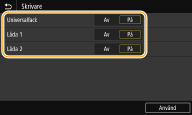 Ange alltid <På> för åtminstone <Låda 1> eller <Låda 2>. Om du anger <Av> för båda lådorna kan du inte slutföra konfigurationen.