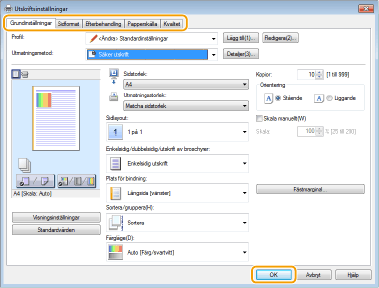 Ange de utskriftsinställningar som behövs och klicka på [OK].