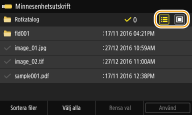 Om du väljer <Datum/tid (stigande)> eller <Datum/tid (fallande)> sorteras filerna baserat på ändringsdatum och tid.