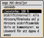 Välj <På> om du vill skriva ut i läget för att spara toner. Välj <På> när du vill kontrollera layout eller andra utseendemässiga egenskaper innan du går vidare med utskriften av ett stort jobb. Mer information om inställningen finns i