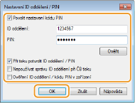 Podle potřeby zadejte kód PIN spojený s ID oddělení.