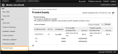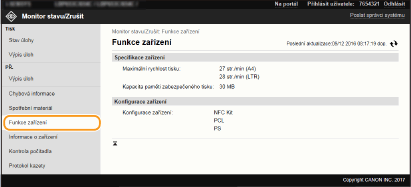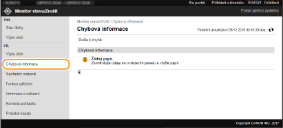 V seznamu budou uvedeny všechny právě tištěné dokumenty i dokumenty čekající na tisk, a to bez ohledu na nastavení správy ID oddělení.