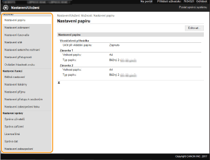 Prostřednictvím Vzdáleného uživatelského rozhraní můžete změnit různá nastavení zařízení. Většinu nastavení je možné zadat i prostřednictvím zařízení, existuje však několik nastavení, která lze zadat pouze prostřednictvím Vzdáleného uživatelského rozhraní. V této části je popsán základní postup, jak změnit nastavení zařízení pomocí Vzdáleného uživatelského rozhraní.