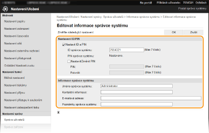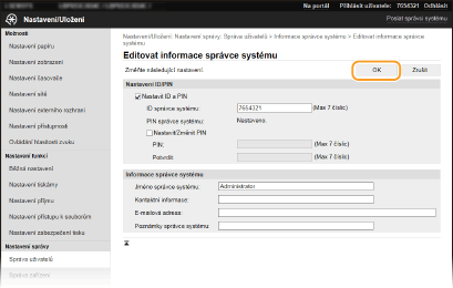 Některá nastavení můžete změnit pouze v případě, že jste přihlášeni v režimu správce systému.