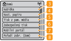 <Pořadí zobr. (Dom)>Umožňuje změnit pořadí, v jakém se zobrazují tlačítka na obrazovce Domů. Přizpůsobení obrazovky Domů