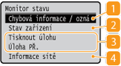 Umožňuje zobrazit aktuální stav vybraných položek. Jako příklad je níže uvedena obrazovka <Stav tiskové úlohy>.
