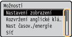 Máte možnost změnit celou řadu nastavení zobrazovaných na displeji, jako je jazyk zobrazování: <Nastavení zobrazení>