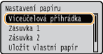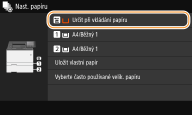 Jakmile je výchozí nastavení papíru uloženo, přestane se po vložení papíru zobrazovat obrazovka nastavení papíru a zařízení použije vždy toto nastavení. Pokud do zařízení vložíte jinou velikost nebo typ papíru a nezměníte nastavení papíru, nemusí zařízení tisknout správně. Chcete-li tomuto problému předejít, vyberte v kroku 3 možnost <Určit při vkládání papíru> a poté vložte papír.
