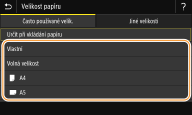 ![]() ![]() Jestliže si velikosti papíru, které často používáte, uložíte pod tlačítka <S1> až <S3>, můžete je vyvolat jediným dotekem. Uložení vlastní velikosti papíru