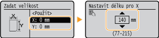 zadejte šířku papíru <Y> zadejte délku papíru ![]() ![]() |
