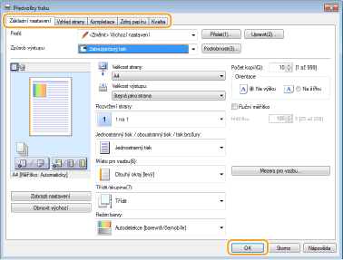 Podle potřeby zadejte nastavení tisku a klikněte na [OK].