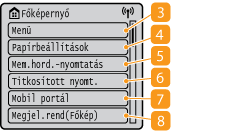<Megjel.rend(Főkép)>Lehetővé teszi a Főképernyő gombjai megjelenítési sorrendjének módosítását. A Főképernyő testreszabása