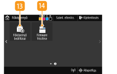 A festékkazettában lévő festék mennyiségeMegjeleníti a festékkazettákban lévő festékszintet. El van rejtve olyankor, amikor a Főképernyő aktív.