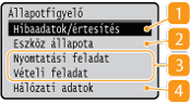 <Állapotfigyelő> A Érintőpaneles modell képernyője