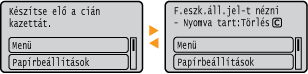 A képernyőn üzenetek jelennek meg olyan helyzetekben, amikor például kifogy a papír, vagy a festékkazetta élettartama aa végéhez közelít.