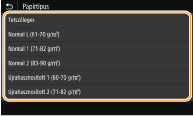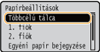 Az alapértelmezett papírbeállítás bejegyzése után a papírok behelyezésekor nem jelenik meg a papírbeállító képernyő, a készülék mindig ugyanazt a beállítást alkalmazza. Ha a papírbeállítások módosítása nélkül helyez be más méretű vagy típusú papírt, akkor a készülék valószínűleg nem megfelelően fog nyomtatni. A probléma kikerüléséhez válassza a <Megadás a papír betöltésekor> lehetőséget a 3. lépésben, majd töltse be a papírt.