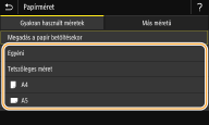 ![]() ![]() Ha regisztrálja a gyakran használt papírméreteket az <S1> és <S3> közötti gomboknál, akkor egyetlen érintéssel előhívhatja őket. Egyéni papírméret bejegyzése