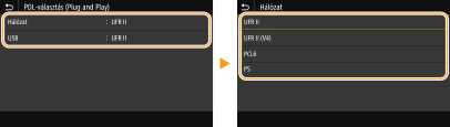 Itt kiválaszthat egy oldalleíró nyelvet, amely alapján a számítógépek, amelyek USB-kapcsolaton keresztül észlelik a készüléket, megállapíthatják, hogy az kompatibilis az adott nyelvvel.