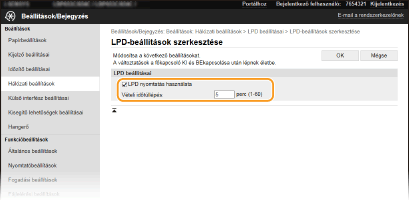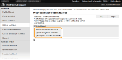 WSD-n keresztüli nyomtatáshoz jelölje be ezt a jelölőnégyzetet. Ha nem használ WSD-nyomtatást, akkor törölje a jelet a jelölőnégyzetből. [WSD-böngészés használata]