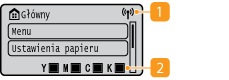 Pozostała ilość toneru w zasobnikach z toneremUmożliwia sprawdzenie ilości toneru pozostałego w zasobnikach z podziałem na etapy. Funkcja ta jest ukryta, gdy aktywny jest Ekran główny.