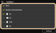 Usuń zaznaczenie pól wyboru dla formatów papieru, które nie mają być wyświetlane.