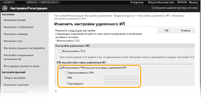 ![]() Использование панели управленияНастройки PIN-кода для доступа к Удаленному ИП можно также открыть с помощью <Меню> на экране Главный. <Настройки удаленного ИП>