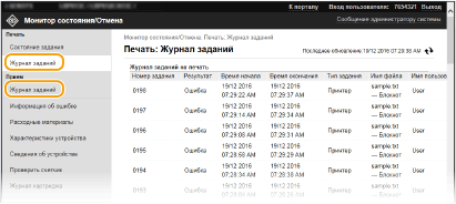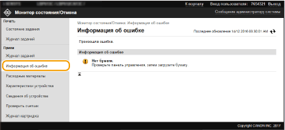 При появлении ошибки щелкните сообщение, показанное в [Информация об ошибке] на странице портала (главная страница), — отобразится эта страница.