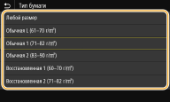 Если приведенный выше экран не отображается при загрузке бумагиЕсли вы всегда загружаете в универсальный лоток бумагу одинакового размера, можно пропустить операции по определению бумаги, выполнив регистрацию размера и типа бумаги в качестве параметра по умолчанию. Однако если зарегистрирован параметр по умолчанию, приведенный выше экран не отображается. Чтобы отобразить этот экран, выберите <Указать при загрузке бумаги> (Регистрация параметров бумаги по умолчанию для универсального лотка).