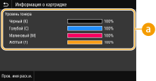 Отображает оставшийся объем тонера в картридже. Срок службы других компонентов может истечь до того, как закончится тонер.