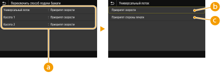 Доступная бумага), вместо этого для источника бумаги применяется значение <Приоритет скорости>. В этом случае необходимо загружать бумагу так же, как при выборе значения <Приоритет скорости> (
