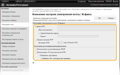Данный параметр определяет интервал (в минутах) автоматического подключения к серверу POP3. Если на сервере имеются интернет-факсы, они будут автоматически приняты и напечатаны.