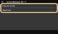 При подключении аппарата к беспроводной локальной сети возникает ошибка аутентификации в том случае, если на беспроводном маршрутизаторе настроена аутентификация с помощью ключа совместного использования. В этом случае аппарат автоматически изменяет значение настройки на <Общий ключ> и выполняет повторную попытку подключения.