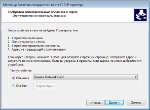 ![]() *При выборе значения для [Тип устройства], выберите [Canon Network Printing Device with P9100] в пункте [Стандартная].