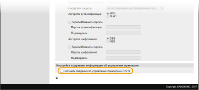 Если SNMPv1 отключен, некоторые функции аппарата будут недоступны (например, получение сведений об аппарате посредством драйвера принтера).
