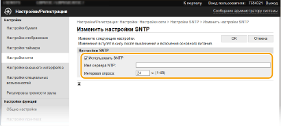 SNTP аппарата поддерживает серверы NTP (версия 3) и SNTP (версии 3 и 4).