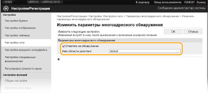 Установите этот флажок, чтобы настроить аппарат для ответа на пакеты группового обнаружения программного обеспечения управления и разрешить мониторинг с помощью программного обеспечения управления. ![]() Изменение номера порта для группового обнаружения см. в Изменение номеров портов.