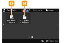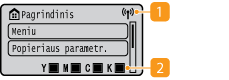 Dažomųjų miltelių kasečių likutisRodomas dažomųjų miltelių kasečių likutis etapais. Nerodomas, kai aktyvus pagrindinis ekranas.