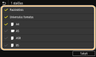 Nepasirinktus popieriaus formatus galima peržiūrėti popieriaus formato nustatymo pasirinkimo ekrane pasirinkus <Kiti formatai>.